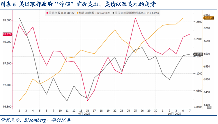 资本市场如何反应?尽管美国联邦政府于10月1日正式“停摆”,但美股市场表现出韧性,道琼斯工业指数和标普500指数在当天收盘时均创下历史新高。市场的乐观情绪主要受到ADP疲软的就业数据的提振,投资者对美联储将在本月晚些时候降息的预期升温。此外,美元指数也在政府“停摆”落地后震荡回升。
