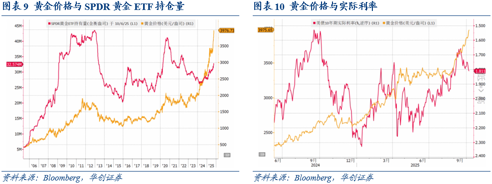 国际现货黄金价格近期延续强劲上涨势头,在10月7日亚洲交易时段,COMEX黄金期货价格史上首次触及4000美元/盎司的整数关键点位,再次刷新历史纪录。本轮黄金价格的迅猛上涨是由多重系统性因素和市场情绪共同推动的结果:一是美联储降息预期与实际收益率下降,实际利率的下降使得黄金相对于有息资产更具吸引力,吸引近期黄金ETF持仓量持续提升;二是地缘政治不确定性与避险需求,包括美国政府“停摆”、高市早苗或将成为日本首位女首相、法国总理勒科尔尼辞职等;三是各国央行持续购金。