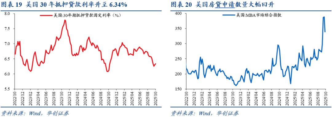 抵押贷款申请数量明显回落。9月26日当周,美国MBA市场综合指数(反映抵押贷款申请数量情况)降至339.1,环比一周前回落12.7%。