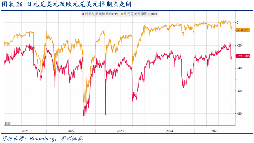 2、离岸美元流动性:日元兑美元及欧元兑美元掉期点走阔