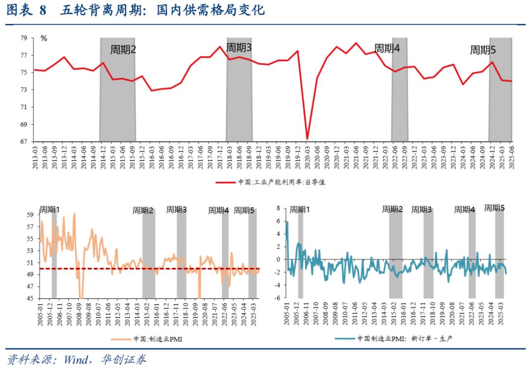 对比本轮:从上述三个反映国内供需格局指标来看,当下与周期2-4区别不大,供需矛盾相比周期1更加突出,毕竟事实上,周期1中本身PPI同比始终维持正增、并没有明显大幅回落(图1)。