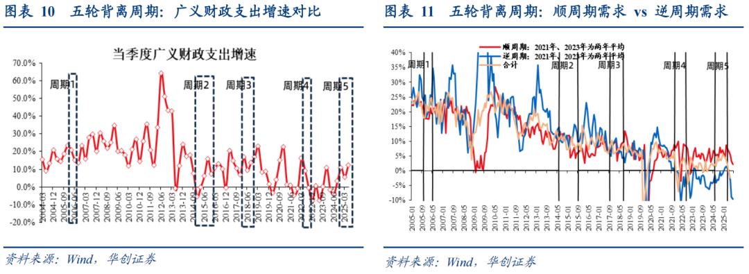 ②政策力度:较大的政策力度或可对冲物价下行压力。可以直接用广义财政赤字率提升幅度、广义财政支出增速衡量,不过考虑到财政赤字率和财政支出增速都是季度指标,我们通过拆分宏观需求,侧面观察“需要”的潜在政策力度区别。