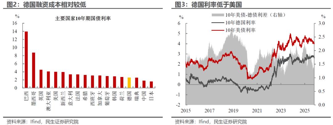 并且相较于其他国家,德国的融资优势非常明显,德国10年期国债利率为2.6%左右,不仅低于英法意等欧洲其他国家,而且低于美国,在财政扩张中的痛感最低,自然当仁不让。本次德国扩张与去年的中国国债置换地方债务有相似之处,带来的利息节省也是一笔不容忽视的“好处”。