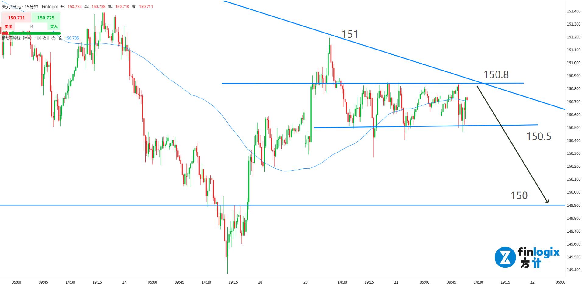 日内交易策略:(均值回归)突破150.5后跟空,或150.8-151小止损布局空单