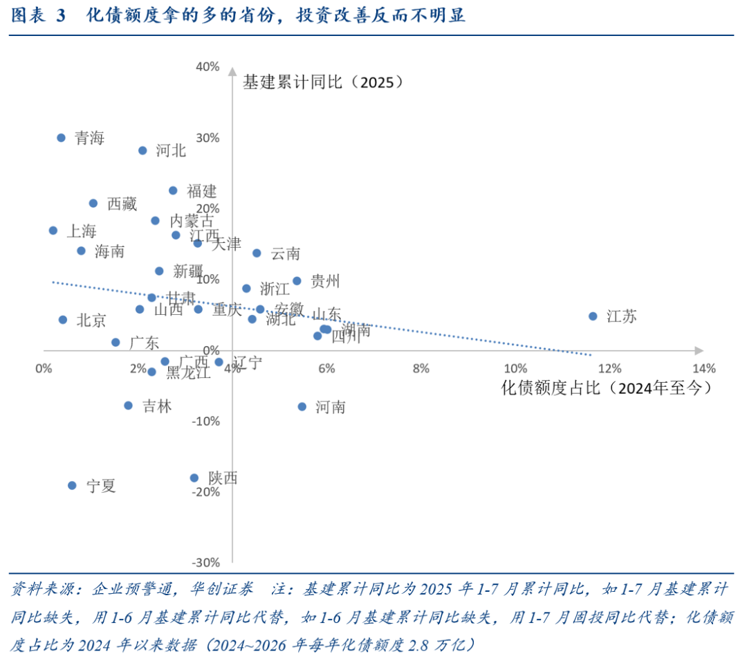 作为验证,我们观察到,2024年以来化债额度拿的多的省份,今年的投资改善反而不明显(图3)。
