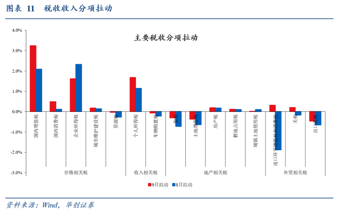 (一)收入端:税收收入增速创年内新高,价格相关税、个人所得税仍为主;8-9月计算机通信设备、科学研究和技术税收收入双位数增长