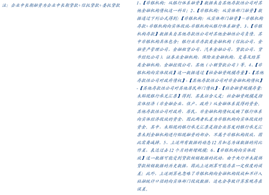 其他因素是一些影响货币派生的杂项。结合央行前期专栏《直接融资发展与货币政策框架转型》。央行谈到:“存款的分流和回流,影响了银行体系的货币创造,对M2造成了很大扰动。主要有两种机理:一是银行存款流向资管产品后,非银行机构购买了同业存单、金融债券等,不计入M2。二是非银行金融机构资金更为充裕,偿还了存量的银行借款和回购,或是购买了银行持有的债券资产等,都会使得银行资产负债表收缩,派生的存款和M2相应减少。”